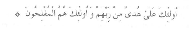 They are on [true] guidance from their Lord, and it is these who will prosper. (Ûlâ'ika 'alâ hudan min Rabbihim wa ûlâ'ika humu'l-muflihûn.)