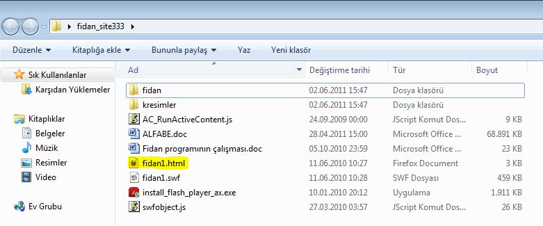 Burada sarı renkte işaretlenmiş olan fidan1.html dosyasına çift tıklayınız. fidan1.html dosyasına çift tıklayınızda aşağıdaki gibi program açılacaktır.