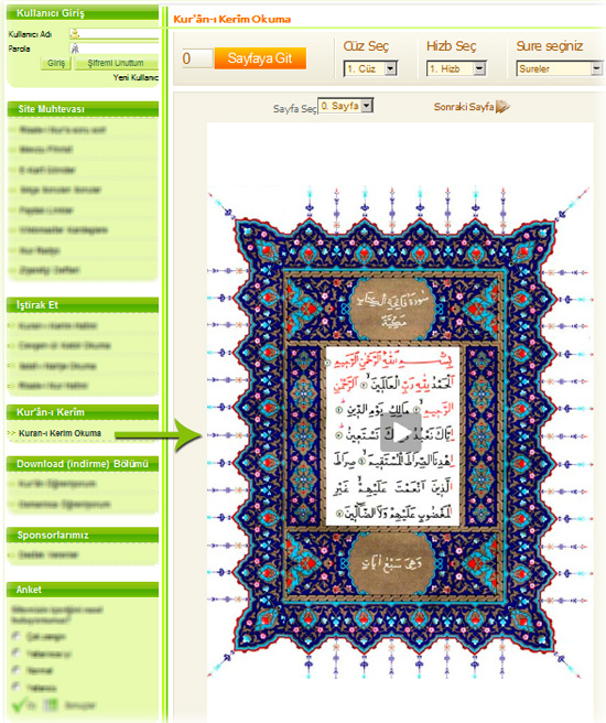 Resimde ok ile gösterilen Kur'ân-ı Kerim başlığından ulaşabilirsiniz.