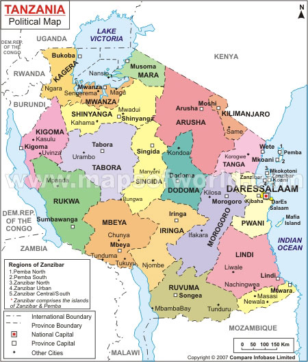 Birleşik Tanzanya Cumhuriyeti: Doğu Afrika’da bir ülke olan Tanganika, kuzeyde Kenya, Uganda, kuzeybatıda Rwanda ve Burundi, batıda Kongo, güneybatıda Zambiya, güneyde Malawi ve Mozambik, doğuda Hint Okyanusu ile çevrilidir.Ulkenin ismi 1964’te Tanzanya olmustur. (Tan+Zan= Tanzanya) Zira ülke ana karada olan Tanganika ve Hint okyanusunda yer alan zanzibar ülkesinin birleşmesinden meydana gelmiştir. .Yasama Başkenti Dodoma'dir. En büyük kenti aynı zamanda 2 bucuk milyon nufuslu Geleneksel Baskenti olan Darüsselam'dır. 945,090 km² yuz olcumune sahip olan ulkenin nufusu 40 milyon civarindadir.Halkin sadece % 10’uSehirlerde yasar. Nüfûsun büyük çoğunluğu Bantu olarak bilinen Afrikalılardan meydana gelmiştir. Ayrıca ülkede az sayıda Arap, Hintli, Pakistanlı ve Avrupalı vardır. Tanzanyalıların büyük çoğunluğu kabileler halinde yaşar. En kalabalık kabile Victoria Gölü civarındaki Sukuma’dır. Diğer büyük kabile grupları Nyamwezi, Haya, Makonde, Ha, Chagga, Gogo, Nyakyusa, Hehe ve Masai’dir. Nüfusun büyük çoğunluğu Swahili dilini konuşur, İngilizce resmi dilidir. Resmi para birimi Tanzanya Şilini olan ülkede İslamiyet, Hıristiyanlık ve Putperestlik dinleri yaygındır. Sekizinci yüzyılda Tanzanya’ya Araplar gelerek İslamiyeti yaymislar.Ülke nüfûsunun % 33’ü Müslüman, % 44’ü Hıristiyan, kalanı putperesttir. İslamiyet Zengibar ve Tanganika kıyısına asırlar önce gelmiştir. On dokuzuncu yüzyılda iç kesimde yayılmıştır. Hıristiyanlık 1840’tan itibaren misyonerler tarafından Tanzanya’ya getirilmiştir.Tanzanya’da halkın % 60’ı okuma-yazma bilmektedir. 3500 kadar talebe Darüsselam’daki üniversitede, Uganda’daki Doğu Afrika Üniversitesinde ve yüksek teknik okullarda, yüksek tahsil yapmaktadır. Ülke hala orta dereceli öğretimde ve üniversitede yabancı öğretmenlerden istifade etmektedir.