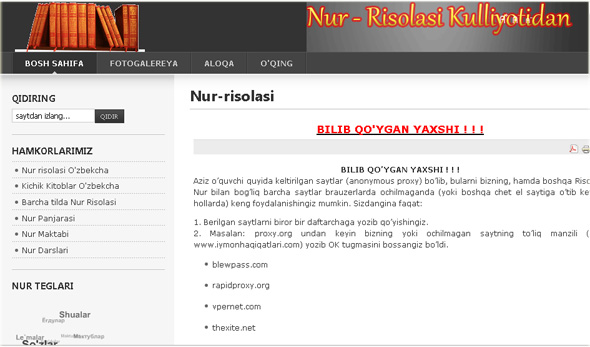Özbekçe Risale-i Nur sitesi.. 09 Eylül 2011