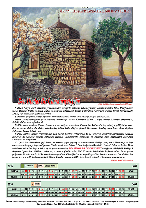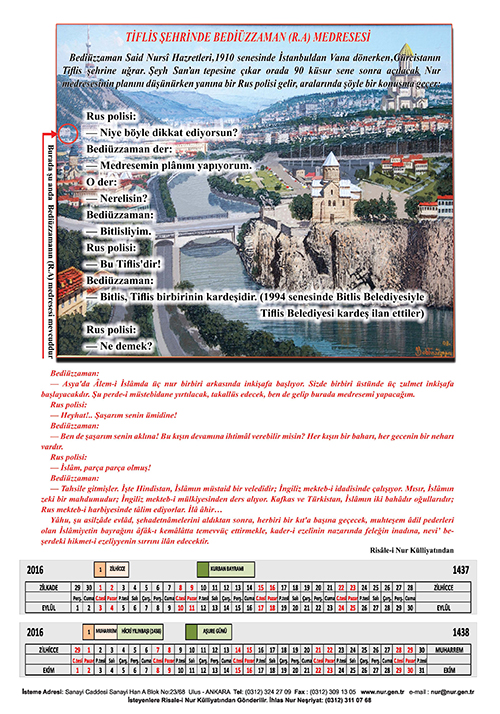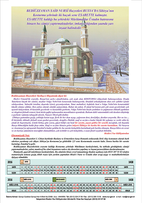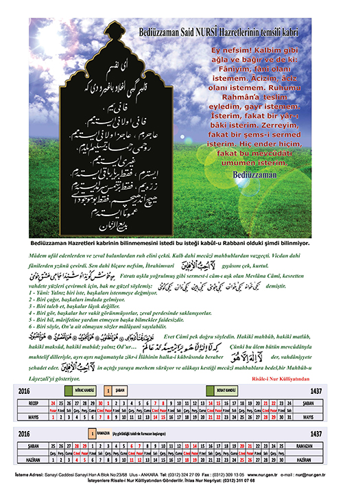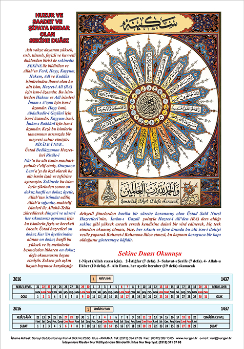 2016 Nur Takvimi basıldı.. 24 Aralık 2015