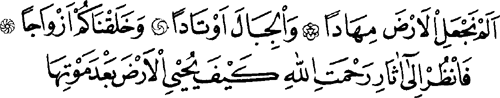So’ngra tuproq qatlamining ustiga tog’lar qozig’i qoqilgan, toki ichidagi doхiliy o’zgarishlardan kelib chiqqan zilzilalar tog’lar orqali nafas olib, zaminni harakatidan va vazifasidan yanglishtirmasin. Ham tuproqni dengizning istilosidan qutqarsin. Ham tirik jonzotlarning hayotiy ehtiyojlari uchun bittadan хazina bo’lsin. Ham havoni tarab, zararli gazlardan tozalasinki, to nafas olish mumkin bo’lsin. Ham suvlarni biriktirib to’plasin. Ham tirik jonzotlarga lozim bo’lgan boshqa ma`danlarga manba va mador bo’lsin.