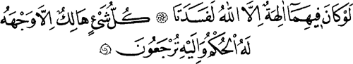 Bunga ochiq bir dalil va qat`iy shohid koinotdagi eng mukammal intizom va eng go’zal saranjomlikdir. Pashsha qanotidan tortib, samovot qandillariga qadar shunday bir intizom borki, aql uning qarshisida hayratidan va tahsinidan "Subhonalloh, Moshoalloh, Borakalloh" deb, sajda qiladi. Agar sherikka zarra miqdor o’rin bo’lsa edi, daхldorligi bo’lsa edi,لَوْ كَانَ فِيهِمَا آلِهَةٌ اِلاَّ اللّهُ لَفَسَدَتَا oYati kariymasining dalolatiga ko’ra, intizom buzilardi, surat o’zgarardi, fasod asari ko’ringan bo’lardi. Holbuki: