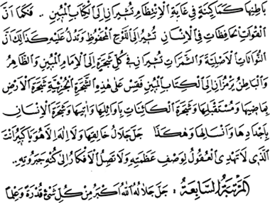 (Xoshiya-3): Bu muborak asmo durbinlari ila, mavjudoddagi jilvalari ostida af`oli Ilohiya va asroriga boqmoqla, Musammoyi Zuljalolga ulashtiradi.
